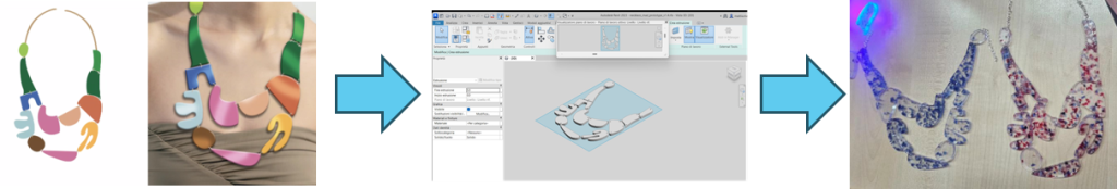 AMFashUp si colloca nel settore del fashion e rappresenta un accessorio moda indossabile, una collana, caratterizzata da un design modulare che permette una configurazione personalizzabile. AMFashUp è pensato per essere multi-funzione: ogni componente può interpretare un accessorio differente (es., un pendente). Inoltre, ogni prodotto si distingue per la sua unicità considerando la mescola di materiali usati. È inoltre un prototipo sostenibile, in quanto realizzato attraverso tecnologia additiva DLP utilizzando materiali e tessuti derivanti da scarti di produzione annegati in una matrice polimerica.